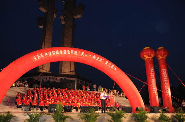 2011年6月12日,在集团公司董事长、党委书记张兰柱的带领下,由安全部牵头,全公司积极响应市政府安全生产月宣传活动,组织公司管理人员到人民广场参加公众宣传活动,向市民展示集团公司“抓质量、保安全、增效益、促和谐”的生产经营理念,提升企业的社会形象和影响力。6月13日晚,在人民广场举办了市住房和城乡建设系统“庆七一、保安全”文艺晚会,集团公司作为我市建筑业的龙头企业参加了晚会,并为广大观众奉献了精彩的演出节目。