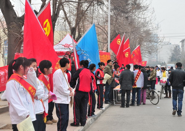 3月5日集团公司青年志愿者高举团旗来到茗畅园社区,开展志愿服务……